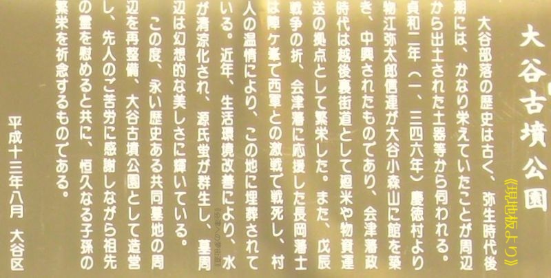 墓域である大谷古墳公園の頂から、やや下がった場所にある。