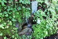 採水している(株)ハーベスの工場の脇から10メートルほどの井戸に湧いていたが、今では道路沿いの公園風の場所に引水してある。