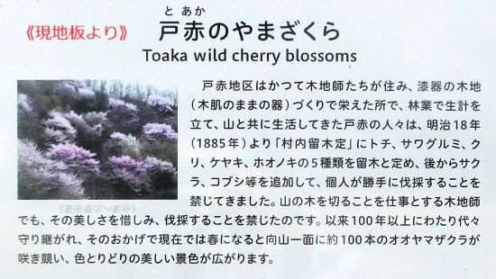 樹齢100年を超えた濃いピンクの桜が、100余本も自生している。